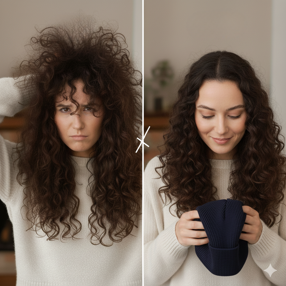 Anders als klassische Mützen, die die Haare platt drücken, statisch aufladen oder die Locken ruinieren, sorgt das glatte Satinfutter für ein sanftes Gleiten – ganz ohne Reibung.